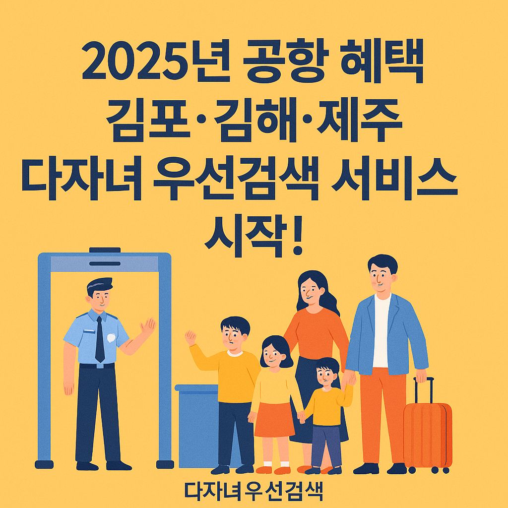 한국공항공사에서 2025년 6월 10일부터 3자녀 이상 다자녀 가구를 위해 우선검색 서비스를 도입한다고 발표했어요. 정말 기분 좋은 소식이죠!