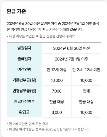 - 개인이 2024년 6월 30일 이전 항공권 발권 후, 2024년 7월 1일 이후 출국했을 경우 환급 대상입니다 .